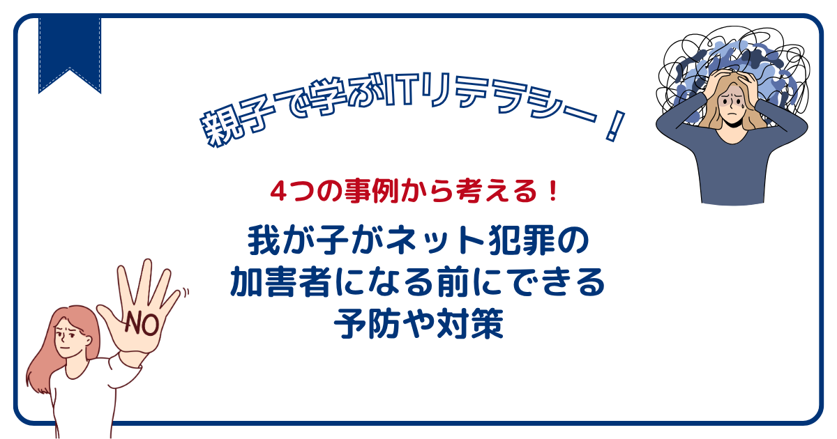 実際に子どもが加害者になった、4つのネット犯罪の事例から、私たちが保護者としてできる予防や対策を考えてみてください。
