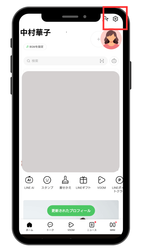 LINEの「ホーム」右上の「設定」ボタンから、必要な設定をオフにしましょう。