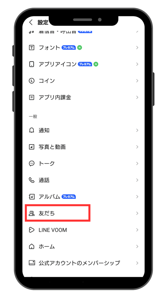 1、設定の中の「友だち」を開きます