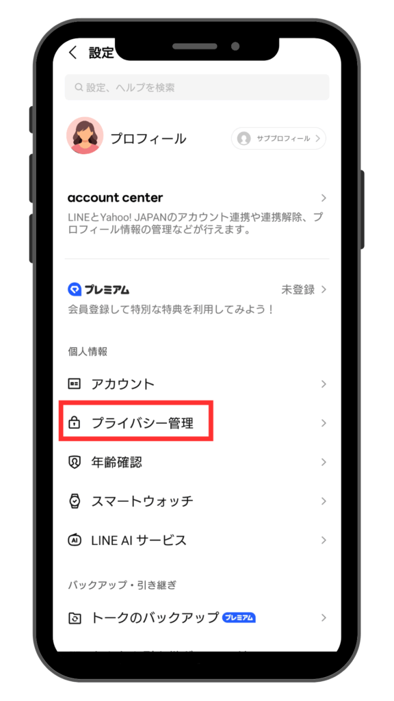 1、設定の中の「プライバシー管理」を開きます
