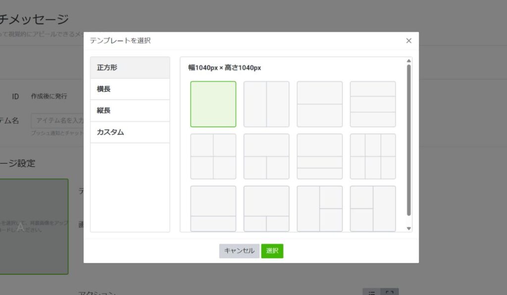 リッチメニューは、正方形の形を基本に、豊富なサイズで作成できます。
