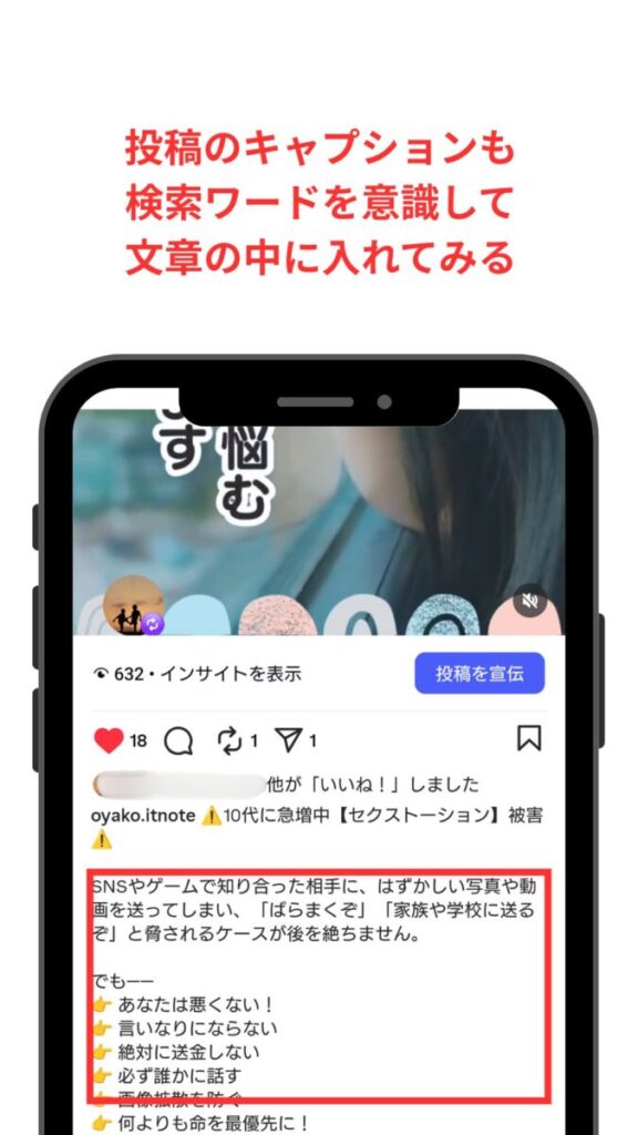 画像や動画を投稿する際の、テキスト文章(キャプション)も大切な要素です。